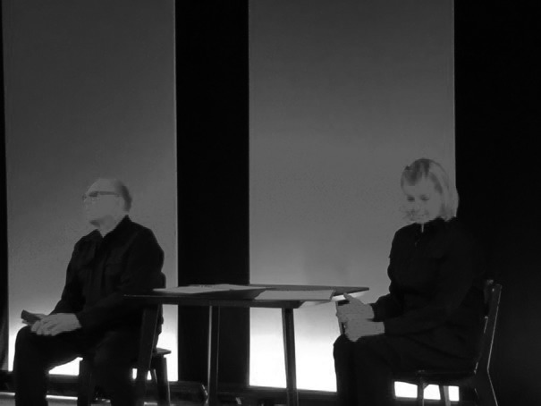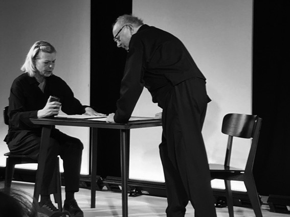 Dramatikern och regissören Dmitri Plax har bearbetat pjäsen. Gunnel Fred och Pierre Wilkner medverkade på scenen.